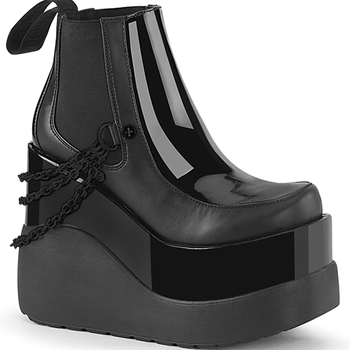 5″ (127Mm) Wedge Tiered Platform Chelsea Style Ankle Boot W/ Elastic Side Panels & Swivel Hook Cascading Chain Detail