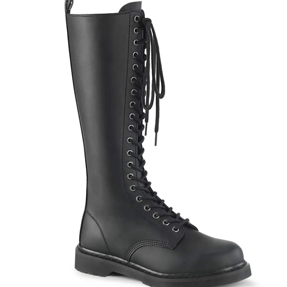 1 1/4″ (32Mm) Stacked Flat Heel 20-Eyelet Lace-Up Knee High Unisex Vegan Boot W/ Back Pull-Tab, Full Length Inside Zip Closure